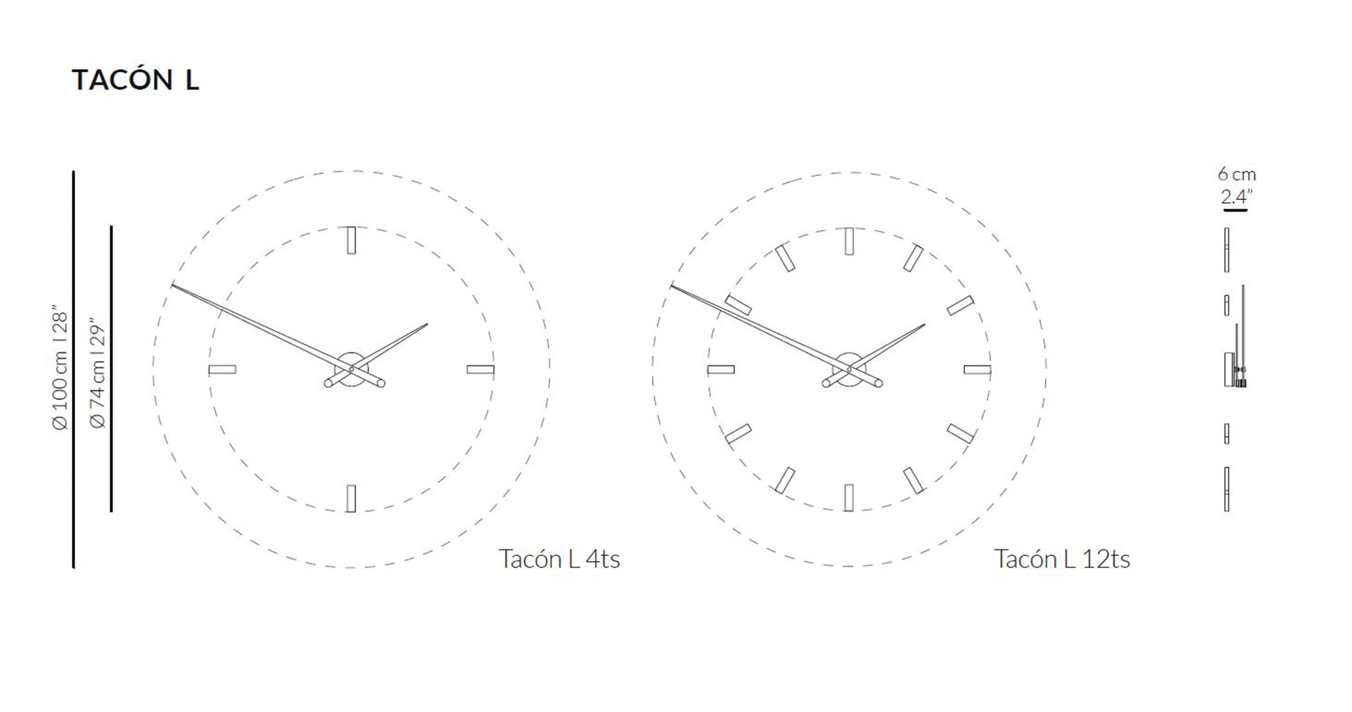 Stenné hodiny Tacon sú esenciou industriálneho dizajnu v avantgardnom vydaní. Tieto hodiny sa vyznačujú výraznými, lakovanými ručičkami v čiernej, červenej, bielej alebo drevenej farbe, ktoré subtílne presahujú obrys značiek hodín, čím sa stávajú hlavným prvkom kompozície. Minimalistické indexy vytvárajú na stene ľahký, geometrický kruh, vďaka čomu moderné stenné hodiny dokonale zapadajú do loftových, moderných a surových interiérov.