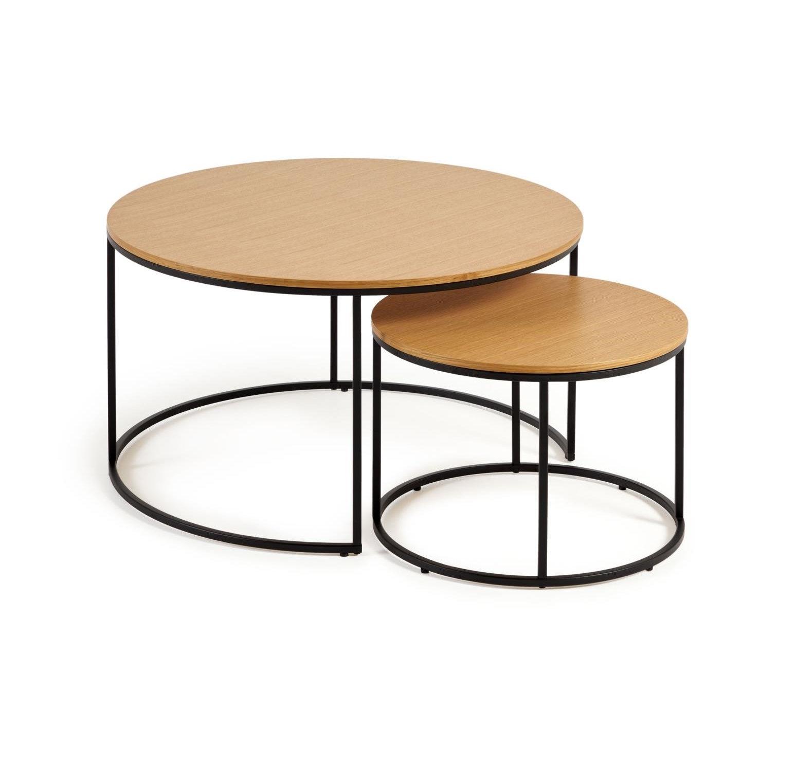 Súprava okrúhlych bočných stolíkov YOANA dýha z duba s čiernym podstavcom