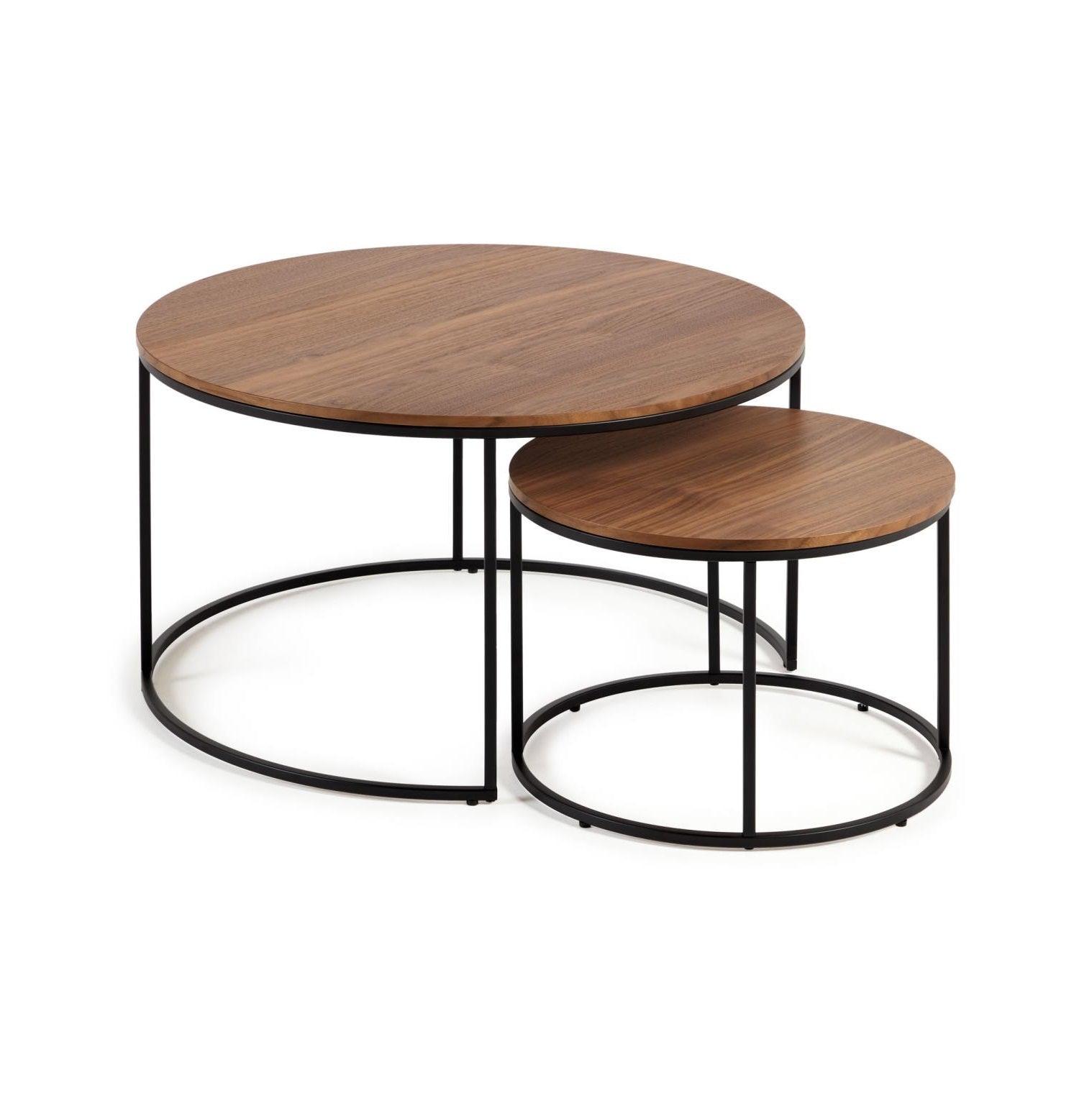 Súprava okrúhlych bočných stolíkov YOANA orechová dyha s čiernym podstavcom