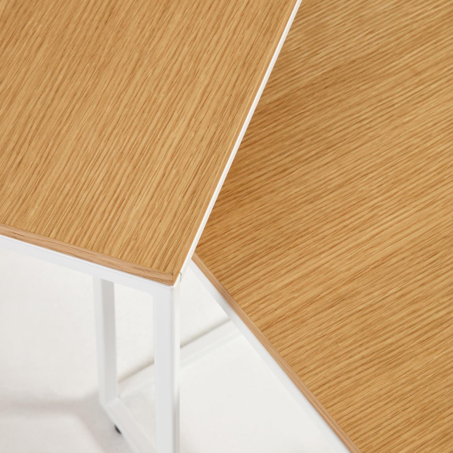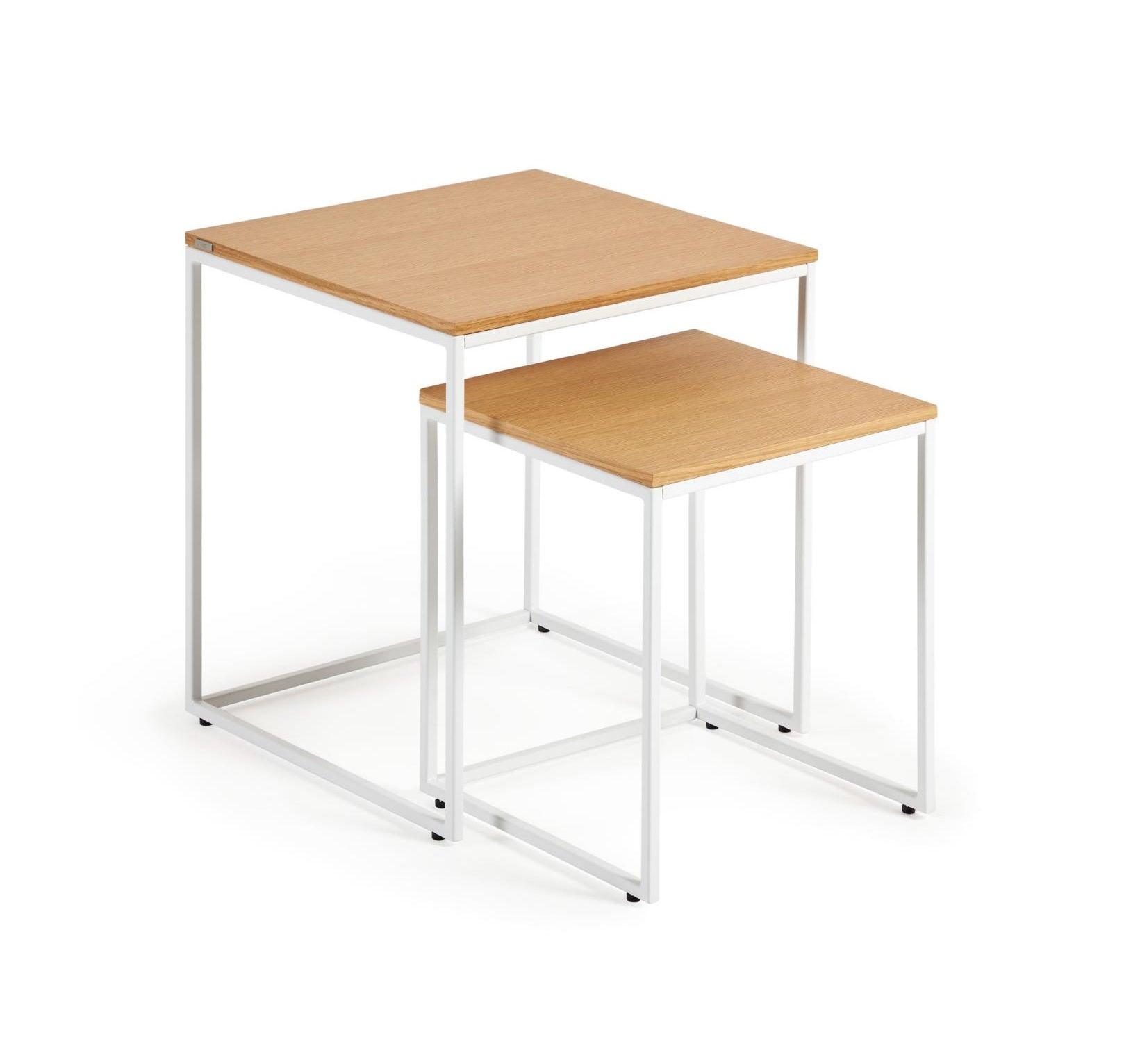 Súprava štvorcových bočných stolíkov YOANA dubová dyha s bielym podstavcom