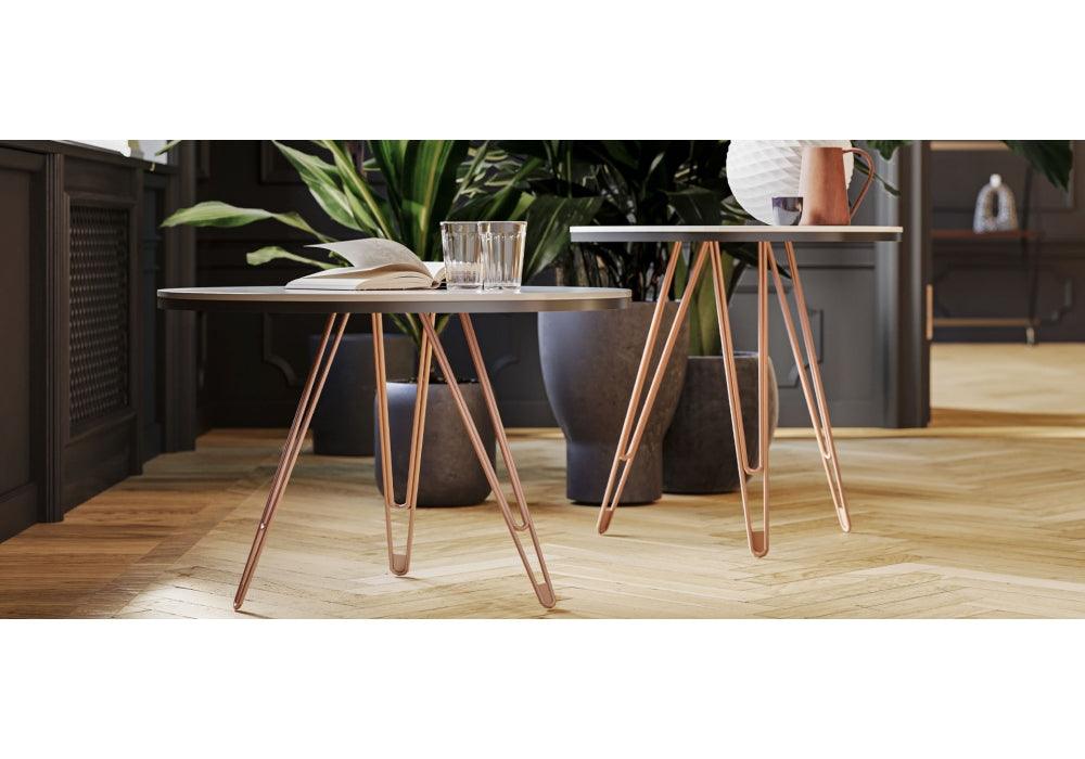 Kávové a koktailové stolíky Linear Shore so sklenenou doskou a digitálnym potlačou s kontrastným materiálovým efektom sú vynikajúcimi doplnkami do elegantných interiérov. Spojujú svet módy a dizajnu vďaka jedinečnej nohe, ktorá odkazuje na kľúčový projektový prvok - sponu.