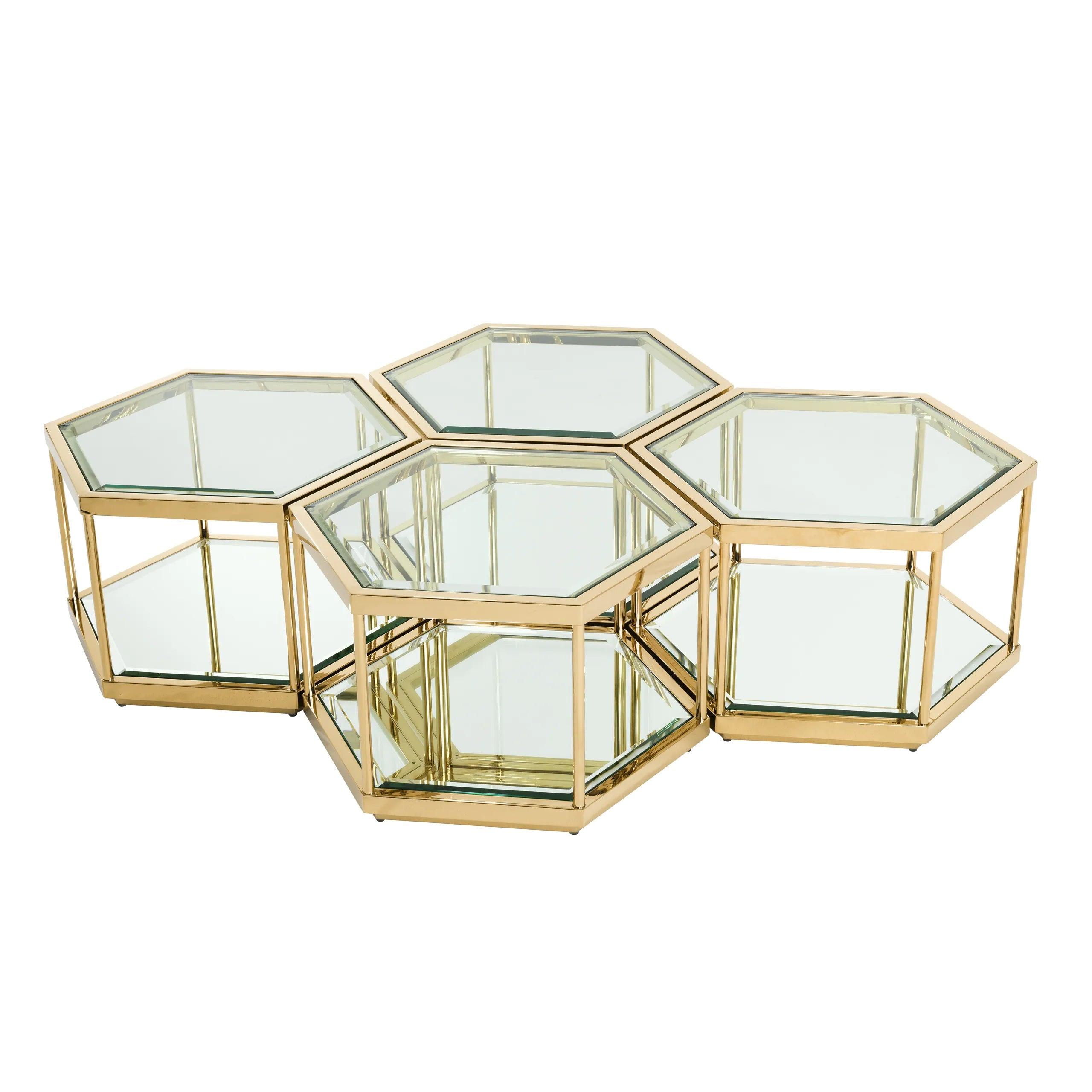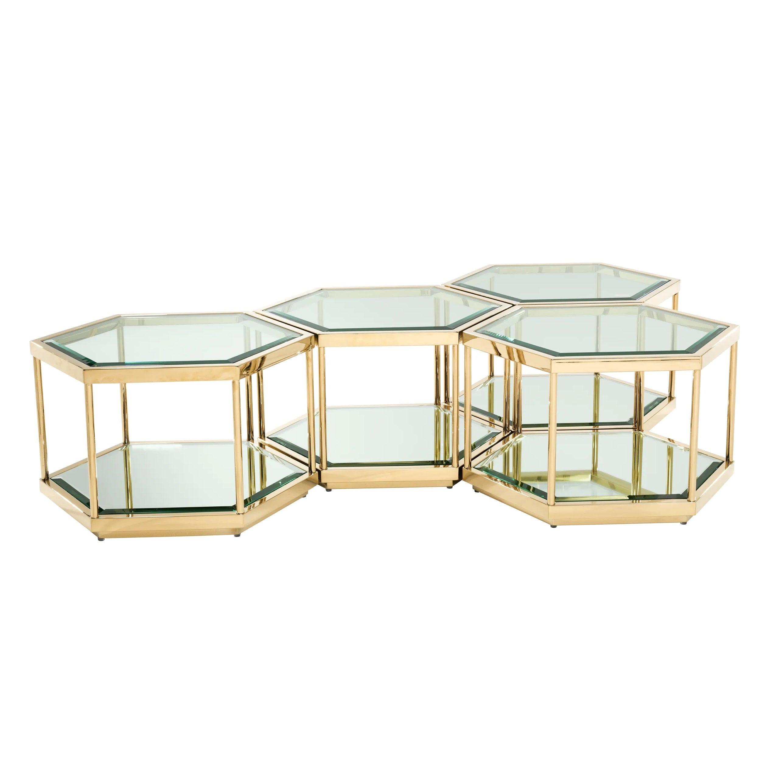 Premyslené vízie a precízne remeslo sa spájajú, aby predstavili výnimočný set kávových stolíkov Sax. Tento úchvatný súbor je inšpirovaný prírodným tvarom plástu medu, ktorý po stáročia symbolizuje harmóniu, silu a luxus. Použitím zlata v ráme stolíka, Sax odráža lesk slnečných dní, pridávajúc teplo a nádheru do každej miestnosti.