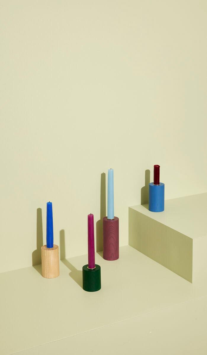 Crayon je súprava výnimočných svietnikov z dubového dreva. Rôzne výšky a živé farby pomôžu vytvoriť jedinečnú kompozíciu na komode v modernom obývacom priestore alebo na parapete v spálni v retro štýle.