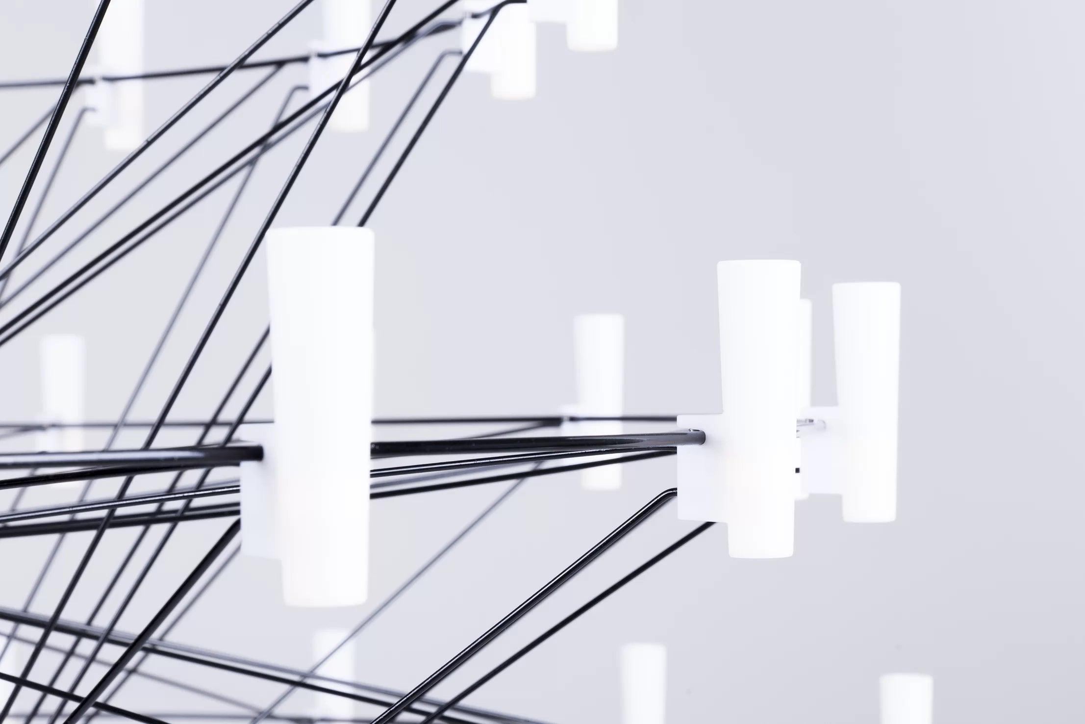 Žiarovka Coppélia je poctou plynulému pohybu a trblietavému svetlu, inšpirovaná slávnym baletom Coppélia. Mechanická bábika z baletu ožíva v podobe závesnej lampy, ktorá svojimi jemnými, vlnitými pohybmi napodobňuje tanec baletky. Projekt od Miyake spája eleganciu a mágiu, vytvárajúc trojrozmernú konštrukciu z prekríženého drôtu, ktorá vedie diváka k desiatkam žiariacich LED svetiel. Tieto svetlá definujú kontúry žiarovky a dodávajú jej klasický, no zároveň moderný lesk.