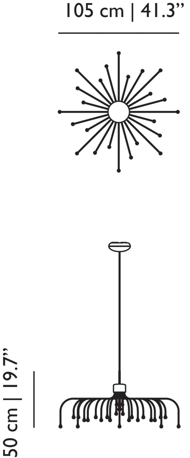 Žite pod hviezdami s lampou Starfall Light od Front! Starfall Light je okrúhla závesná lampa s moderným akcentom. Vybavená 30 zdrojmi svetla LED vnáša do vášho domova večný dážď hviezd. Vďaka 30 štíhlym ramenám rôznych dĺžok, lampa nielenže pripomína padajúce hviezdy, ale aj hviezdnu oblohu s bodmi svetla na rôznych výškach. Nová konštelácia čakajúca na objavenie!